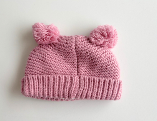Lovely pastel pink knitted bobble hat with double bobble! In really excellent condition.