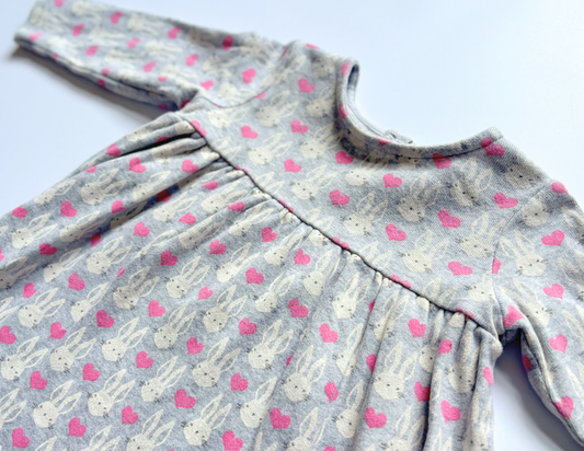 Lovely grey long sleeve dress with bunny and heart print pattern.