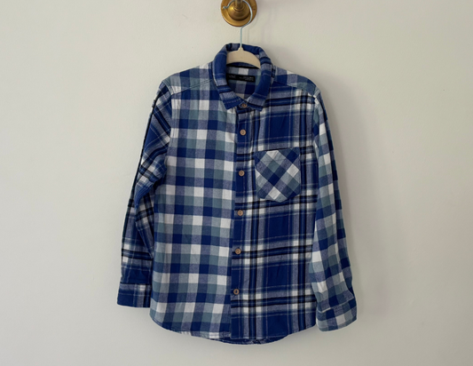 Lovely warm blue and teal and white checked shirt with pocket detail and button fastening.