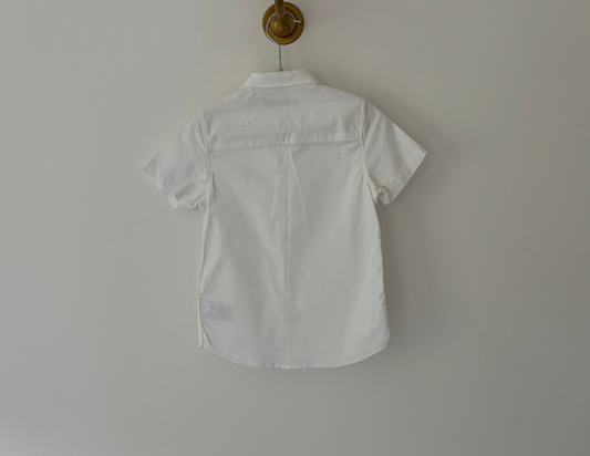 Lovely white cotton/elastane shirt with white embroidered stag and button fastening. Item has 3 tiny brown marks on the back shoulder (shown in photos).