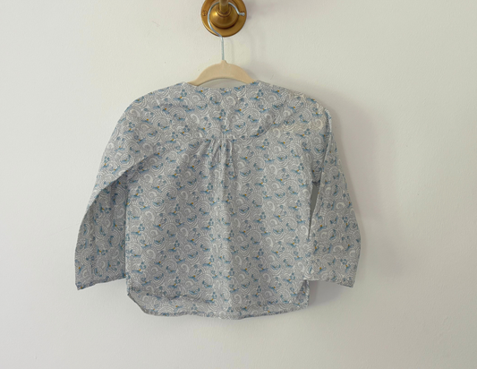 Stunning 100% cotton collarless shirt with gorgeous boat print pattern and button fastening.