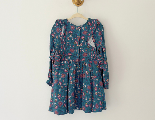 Beautiful cotton dress with Liberty-style print, frill detail on shoulders and beautiful buttons on the back.
