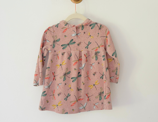 Lovely dusky pink smock dress with collar and dragon fly print. Button fastening on back.
