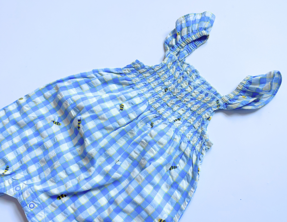 - Joules honey bee print checked summer romper