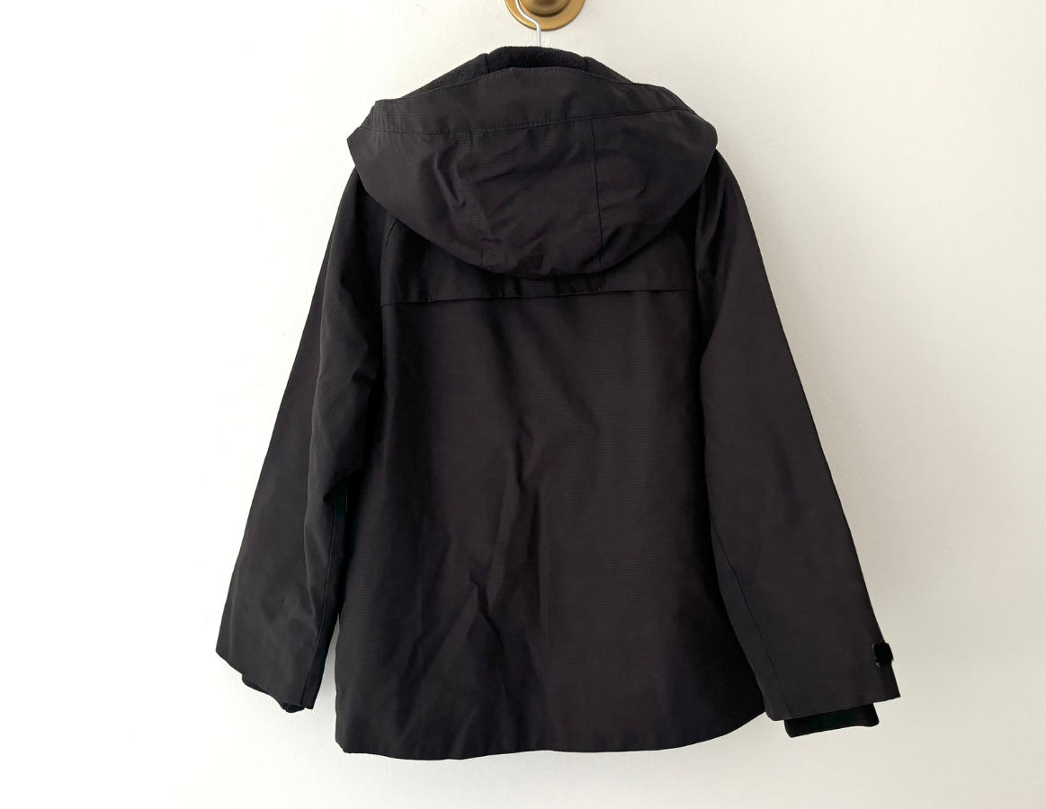 Lovely black fleece-lined lightweight raincoat with hood, zip fastening and pockets.