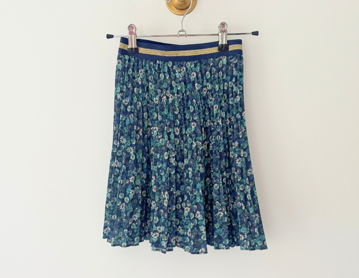 Lovely pleated floral skirt with elasticated waistband with gold detail.