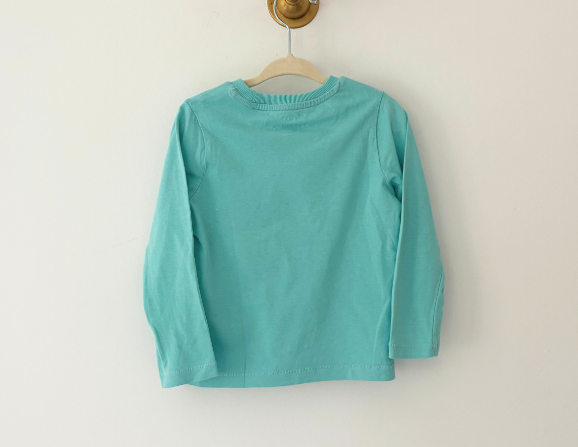 Fantastic cotton long sleeved t-shirt with fun dinosaur on a jet ski print! A twist on a festive top!