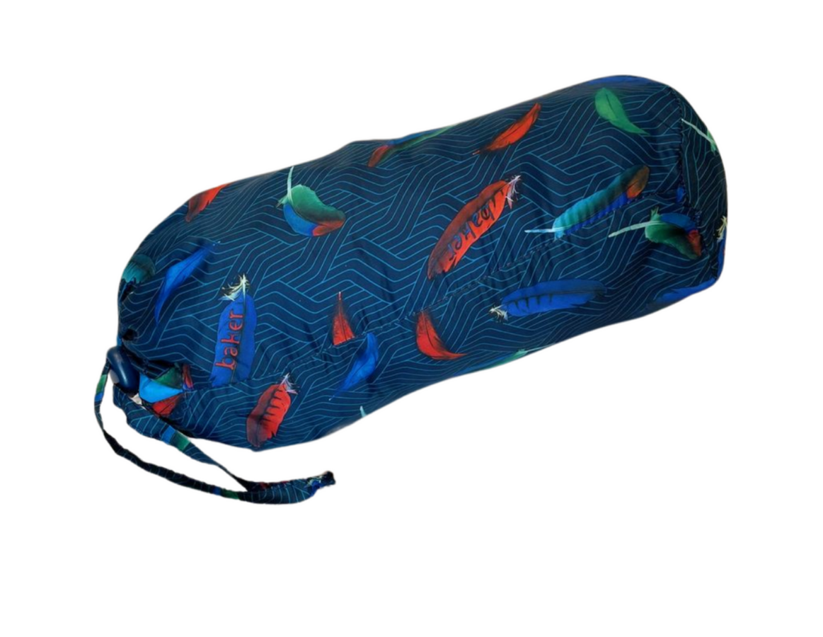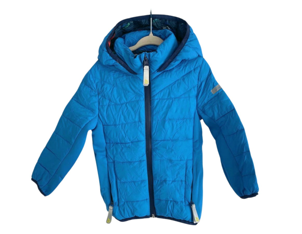 Bright blue weather resistant jacket with patterned lining, zip fastening and zip pockets. Folds away easily into convenient carry bag.