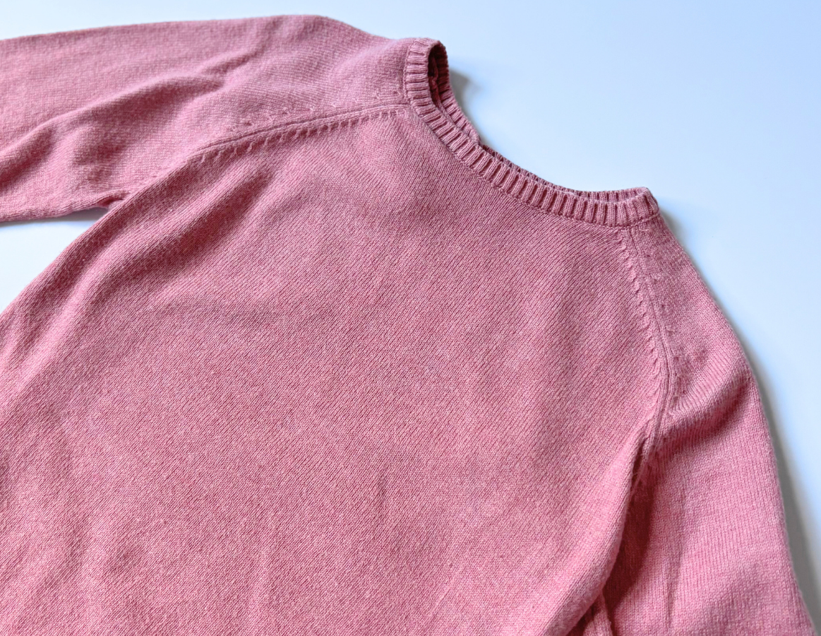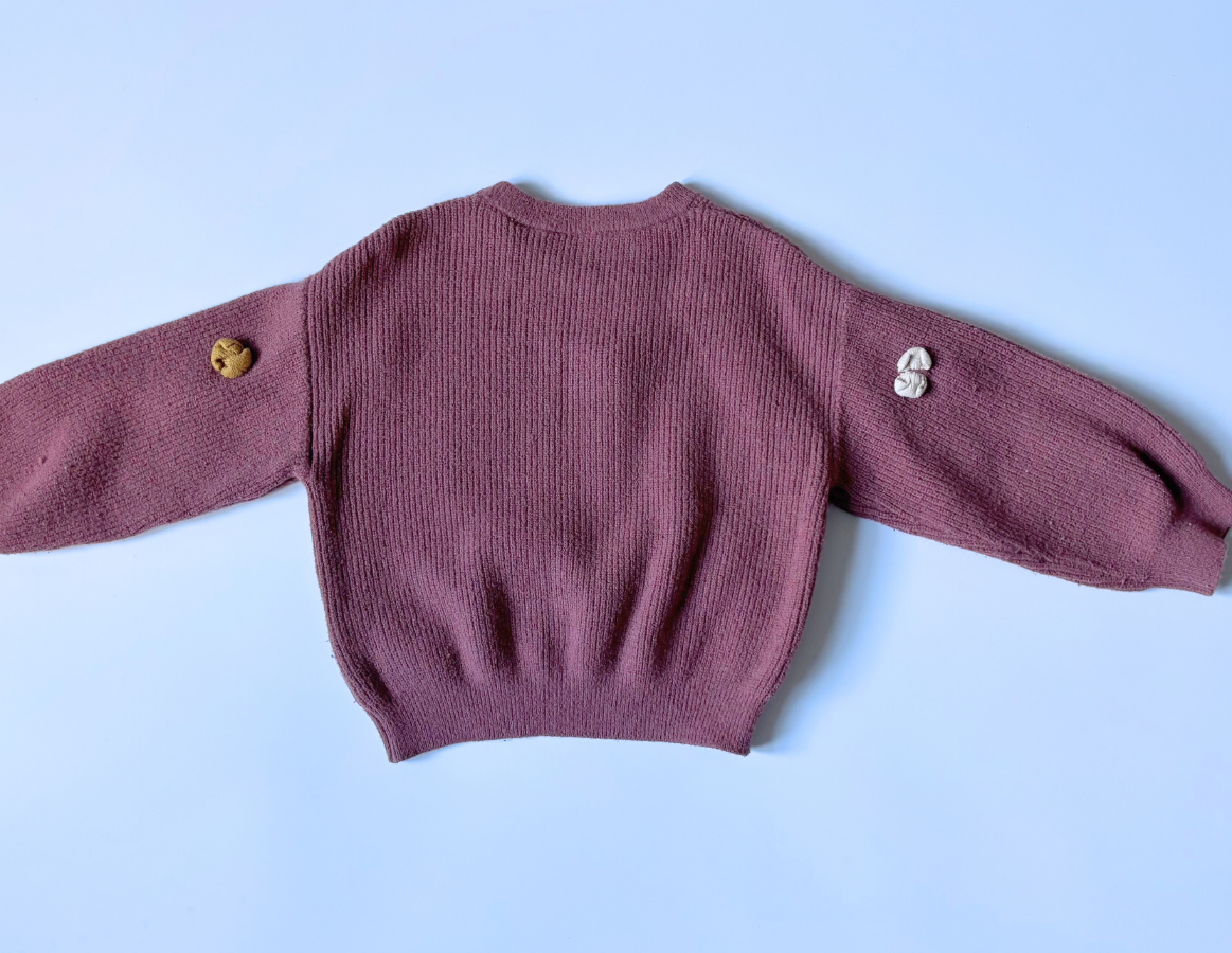 - Dusky pink knitted jumper with coloured floral embellishments